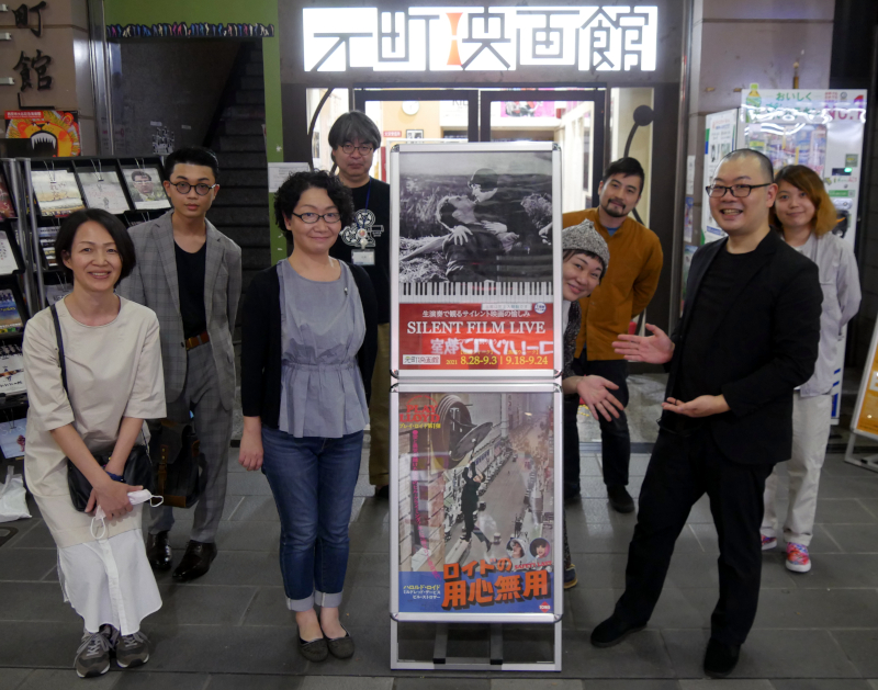 SILENT FILM LIVE【長編ウィーク】、9/20(月)は『ロイドの要心無用』を鳥飼りょうさんのピアノ生演奏付きで上映しました。チャップリン、キートンと並ぶ三代喜劇王のひとりハロルド・ロイドの代表作です。のちに『プロジェクトA』『バック・トゥ・ザ・フューチャー』などでオマージュが捧げられるシーンもあり、世界中の映画人に愛され続けています。「あくまで映画が主役、ピアノはバスガイドのようなもの」とお話しされる鳥飼さんですが、ロイドがビルを登ってゆく本作のクライマックスでは、音楽に誘導されるどころかブンブン振り回されたかのようで、持っていたチラシがフニャフニャになるほど文字通り手に汗握ってしまいました…!改めてサイレント映画上映における音楽の力を体感した回となりました。上映後には、クラシック喜劇研究家のいいをじゅんこさんをお迎えしてトークを行いました。「サイレント期のコメディスターはいかに“キャラクター”を獲得するかが肝要だった」といいをさん。ロイドも売れるまではキャラ作りに迷走していた時期もあるそうで、最初に取り組んだのは【ウィリー・ワーク】という、いいをさんいわく「自主映画でチャップリンのモノマネをしたみたいな」キャラクター。そこからいろいろと工夫と変遷を重ね、カンカン帽と丸眼鏡がトレードマークの普通の青年という、おなじみのキャラクターにたどり着いたのだと話されました。「普通の青年が恋人のために頑張って成功するというアメリカン・ドリーム的要素と、ほかの2人に比べると胸キュン要素の多いところがロイドの魅力なのでは」と鳥飼さん。主人公の身体的表現力で魅せる2人とも異なり、“映画的”なアイデアと面白さに満ちているのもロイド作品の魅力。もっとロイド作品を観たくなるトークでした。