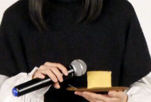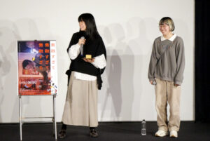 12/6(土)『素敵すぎて素敵すぎて素敵すぎる』の上映後、大河原恵監督、撮影の平見優子さんの舞台挨拶を開催しました。印象的なタイトルが光る本作ですが、『素敵すぎる素敵すぎて素敵すぎる』というタイトルが一番先に生まれて、そのタイトルに向かうように脚本を書いていったという大河原監督。今回初めて大河原監督の作品にカメラマンとして入られた平見さんは、大河原監督の監督作を見ていたそうで「大河原さんの良いところが損なわれないように、わかりやすくしすぎないように」と話し込みながら撮影を進めていったと話されていました。脚本は基本あてがきで書かれているという大河原監督。好きな俳優がこういうセリフを言ったら面白いだろうな、こういう動きをしたら面白いだろうな、というのを考えて、一見奇妙に見えるシーンが脚本に組み込まれていっているという話も。本作のキーになっている「カステラ」についても「実際に本編にあるように病院に行って、自分の首のレントゲン写真を見たらカステラに見えた」という実体験が元になっているというエピソードもありました。主役の春田役も脚本を書いている時点ではお願いしたい俳優さんがいたものの、オファーできず「この世界観を一番理解しているのは私なので私がやるしかない」という経緯で監督兼主演になったという話もあり、本編同様びっくりするようなエピソードがたくさん飛び出し、最後に「カステラ」からのご挨拶もありの盛りだくさんの舞台挨拶となりました。