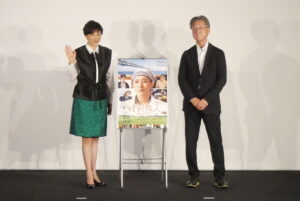 10/12(日)『種まく旅人~醪のささやき~』の上映前、菊川怜さん、北川淳一プロデューサーの舞台挨拶を開催しました。この日は上映前の舞台挨拶となりましたが北川プロデューサーからは「去年9月に淡路島で頑張って作った映画。きっと感動してもらえるような映画になっていると思う」とご挨拶。今回主演を務められ15年ぶりの映画出演となった菊川怜さんは本作出演のオファーを受けて「子育てなどで忙しくしていた時期にオファーをいただいて、主演ということでびっくりした。セリフが覚えられるかの不安もあったがこんなチャンス一生ないかもと思い、飛び込んでみよう、やってみようとオファーを受けた」とお話しされていました。菊川さんは本作の撮影で淡路島に初めて行ったそうで、ロケ地の酒造も実際に酒造として使われている場所。「日本酒の神様が宿っているような。そういう力をもらって撮影に臨んだ」ともお話しされていました。舞台挨拶の最後には北川プロデューサーから「日本の第一産業を見直すことは大切。そういうことを映画で伝えられたら」とメッセージ。菊川さんから「観終わった後に映画を思い出して日本酒を飲んでいただいてもいいですし、食事も楽しんでいただけたら。まずは映画を楽しんでいただけることがわたしたちの喜びです」とこれから本編をご鑑賞いただくお客様にメッセージを送られました。