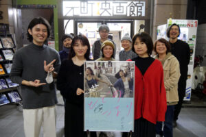 『とどのつまり』1/15(日)に森戸マル子さん、宮寺貴也さん、中村更紗さん、片山享監督による舞台挨拶を開催しました。役者の”生活”を描いた本作。主演である森戸マル子さんは神戸市出身でもあり、舞台挨拶冒頭から涙ぐまれる一幕も。撮影は約1年半前、片山監督は「その時、自分は何を考えていたのか」をあらためて考えながら、本作をお客様と一緒に鑑賞されたようです。宮寺さんからも「久々に見て、以前とは違うところでグッときた」という話がありました。中村さんも最初は志歩に共感したそうですが、「時が経って見ると自分を鼓舞してくれる作品になっている」と撮影からしばらく経って、あらためて抱いた本作の印象を語ってくれました。劇中で森戸さん演じる志歩が映画の感想を言うシーンが2度出てきますが、1つ目は片山監督の短編『名操縦士』、2つ目は片山監督、そして本作には撮影で参加されている安楽涼監督の2人が共同監督を務める長編『まっぱだか』の感想を森戸さんが話されているという裏話もありました。役者の”生活”を描いてるものの、役者ではない人にも届けたいというみなさんの想いを聞いて舞台挨拶は締めくくられました。