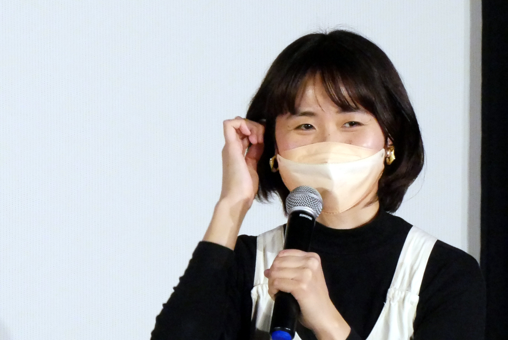『とどのつまり』1/15(日)に森戸マル子さん、宮寺貴也さん、中村更紗さん、片山享監督による舞台挨拶を開催しました。役者の”生活”を描いた本作。主演である森戸マル子さんは神戸市出身でもあり、舞台挨拶冒頭から涙ぐまれる一幕も。撮影は約1年半前、片山監督は「その時、自分は何を考えていたのか」をあらためて考えながら、本作をお客様と一緒に鑑賞されたようです。宮寺さんからも「久々に見て、以前とは違うところでグッときた」という話がありました。中村さんも最初は志歩に共感したそうですが、「時が経って見ると自分を鼓舞してくれる作品になっている」と撮影からしばらく経って、あらためて抱いた本作の印象を語ってくれました。劇中で森戸さん演じる志歩が映画の感想を言うシーンが2度出てきますが、1つ目は片山監督の短編『名操縦士』、2つ目は片山監督、そして本作には撮影で参加されている安楽涼監督の2人が共同監督を務める長編『まっぱだか』の感想を森戸さんが話されているという裏話もありました。役者の”生活”を描いてるものの、役者ではない人にも届けたいというみなさんの想いを聞いて舞台挨拶は締めくくられました。