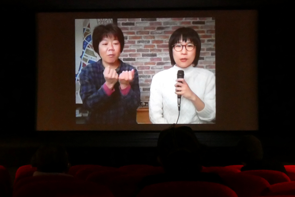 『友達やめた。』上映初日2/13(土)の上映後、今村彩子監督とZoomで繋いでオンライン舞台挨拶を開催しました。なんと手話通訳として“まあちゃん”も参加してくれました!嬉しいサプライズです。まあちゃんが今村監督の前作『Start Line』を観に来られたことでふたりは知り合い、意気投合し仲良くなったそう。付き合う中でちょっと嫌だなと思うことや納得がいかないことが出てき始め、そのストレスを解消したい、モヤモヤした気持ちを整理したいとの思いで作品づくりを思い立ち撮影を始められました。今村監督と同じく聴覚障害をお持ちで、発達障害や精神障害を持つ児童の教育に関わる方からは、本作制作を通して変化したことはとのご質問が。「〈聞こえる人〉をひとくくりにして見ていたことがわかり、ひとりひとりそれぞれの個性と向き合い付き合わなきゃいけないんだということに気づいた。それが最も大きな変化でした」と今村監督。別のお客さまからも、「〈健常者〉や〈障がい者〉という問題ではなく、ひとりひとりの人間同士の関係がテーマ。今日は大切な時間を過ごせた」とのご感想をいただきました。