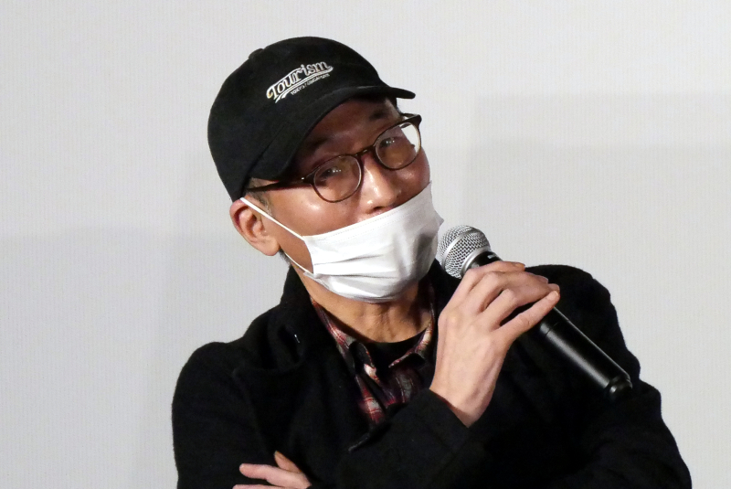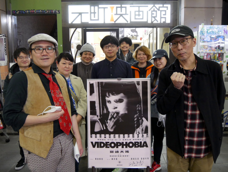 『VIDEOPHOBIA』3/28(日)上映後、映画監督で本作のプロデューサーを務められた西尾孔志さんと、“謎の男”として出演されたフリーの映画宣伝マンである松村厚さんにお越しいただき、トークを開催しました。宮崎大祐監督は長編デビュー作『夜が終わる場所』上映時に、当時大阪の第七藝術劇場支配人だった松村さんにお世話になったと西尾さんにお話しされていたそう。そのエピソードを聞くと、「舞台挨拶の日に高熱を出していたので薬を飲ませて控室に寝かせた」と松村さん。実は『VIDEOPHOBIA』の公開時も熱を出して倒れたことがあり、大柄で一見イカツイのに実はすごく繊細な人物であるという話でまず盛り上がりました。西尾さんに演技プランについて聞かれ、出演シーンの短いセリフが送られてきただけでどんな映画なのかもわからなかったと松村さん。「試写を見るまで自分にとっても自分の役が謎だった」と話されました。監督によりこだわりを見せる部分は様々ですが、現場での宮崎監督は、サクサク進めるシーンとどこまでもこだわって粘るシーンを見分けるセンスが抜群で判断が早いと西尾さん。職人的なところのある監督だと評されます。そして本作のパンフレットに宮崎大祐監督が書いた、『エヴァンゲリオン』からの影響に話が及び、なぜかエヴァ話でも大盛り上がりしました。