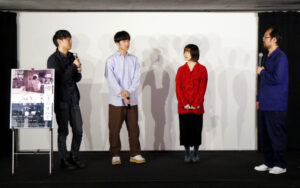 『優しさのすべて』初日4/15(土)の上映後、安達勇貴監督、脚本の四本研祥さん、主演の二田絢乃さんにお越しいただき、またゲストとして本作公式サイトにコメントも寄せられている映画監督・脚本家の野原位さんをお迎えしてトークを開催しました。東京の片隅で暮らす男女を描いた作品ながら、「一種のSF映画だと感じた」と野原さん。〈外〉からやって来て〈外〉に帰っていくアキという存在、マアサとカイが暮らす閉塞感がありながら閉じ込められきらない“ヌケ”のある部屋、そこから脱け出すために闘う過去の映画とは異なり「闘っても仕方ない」という現代的な諦念、膨張した世界—。野原さんの読み解きに、観たばかりの映画の新たな魅力の扉がどんどん開かれていくような快感を覚えます。着想から完成稿まで安達監督とアイデアを出し合って進めたと四本さん。ご自身も監督をされますが、本作ではイメージを持たずに脚本を書いたので、監督の演出に違和感を持つこともなかったそうです。同じく監督/脚本家の顔を持つ野原さんは「すごいですね…!」と感心されていました。「今の抗いがたい“重力”を描きたかった」と安達監督。映画の物語とコロナ禍でのリアルな街の風景をスクリーンに同時に存在させることで作品の強度を高めたかったと話されました。野原さんいわく「脚本家としては書くのを一瞬ためらう“強い”セリフが多い」マアサという役。観る人によっては「この人なんでこんなことするの?」と感じるであろうマアサを演じた二田さんは、「実は初めて読んだ時点で彼女のことが理解できてしまった」と話します。複雑な役ですが、演じるべき人に白羽の矢が立った幸福なケースなのでしょう。安達監督と四本さんはふたたびタッグを組んでの新作も準備中だそう。楽しみです!