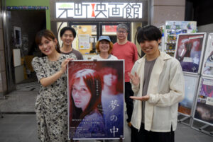 『夢の中』初日の6/22(土)上映後、都楳勝監督と、主人公・タエコを演じた山﨑果倫さんの舞台挨拶を開催しました。前日に梅雨入りしたばかりの神戸で、「あいにくの雨ですが、むしろ『夢の中』日和」と都楳監督。山﨑さんも同じことを言おうとしてたそうで、「帰り道も映画の世界に浸れる」と話されます。一週間の上映期間中、雨が続きそうなのでベストな日程なのかもしれません…!
