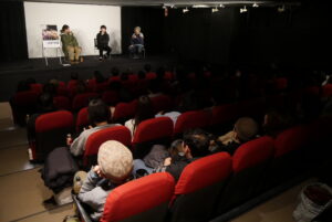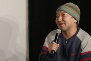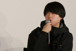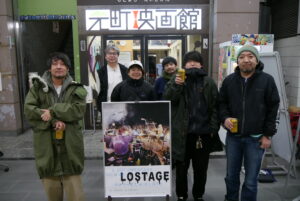 『A DOCUMENTARY FILM OF LOSTAGE』1/24(土)の上映後、五味岳久さん(LOSTAGE)、オサキアユさん(さよならポエジー)、北畑欽也さん(bacho)のトークイベントを開催しました。現在、LOSTAGEはスプリットシングルのツアーをさよならポエジーとまわっているということで、今回ゲストとしてさよならポエジーのオサキアユさんをお呼びしました。映画の感想、LOSTAGEと出会った時のことをお聞きしつつ、この日は急遽、bachoの北畑欽也さんも登壇くださり途中からは3人のトークに。「五味さんがいつも言ってることや、普段自分が接しているまんまが映っている」「LOSTAGEの良さを再確認できた」と欽也さんの感想に対して五味さんは「起承転結があるわけじゃないのに、映画になるんやという驚きがある」ともおっしゃっていました。映画の内容について「バンドの話の映画だと思いきや、どう生きていくのか、どう人と接していくんだろうという映画で、バンドマンじゃなくても共感する人はおるやろうなっていう気がした」とアユさん。五味さんは「この映画は他の人のインタビューが全くない。3人が自分の話をしているだけ」ともおっしゃっていましたが、ゆるい雰囲気のトークながらLOSTAGEの生き方、音楽が後輩や仲間たちにも影響を及ぼし続けていることをしかと感じさせるトークイベントとなりました。