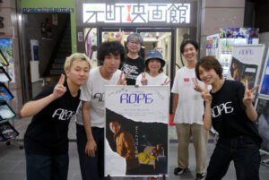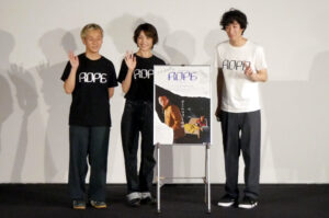 8/30(土)『ROPE』の上映後、樹さん・芋生悠さん・八木伶音監督の舞台挨拶を開催しました。20代の同世代のキャスト・スタッフが集結して作り上げられた本作。企画の発端は主演でありプロデューサーも兼ねる樹さんから。俳優を初めて3年ほどの樹さん。2年ほど前に友人でもあった八木監督に「一緒に映画を撮ろう」と持ちかけた事が始まりだったそうです。当時八木監督は映画の現場に助監督として入られることも多く、まだ自身の長編監督作がなかった時期。樹さんにとっては「初の主演作」、八木監督にとっては「初の長編監督作」となる本作『ROPE』の製作がスタートしたそうです。物語は「不眠症の男が尋ね人のチラシを見つける」という場面のイメージから、八木監督が好きなロードムービーと群像劇の要素を足して作っていったそう。キャストもスタッフも友人を集めていったそうですが、芋生さんは八木監督が「オファーしたい」ということで芋生さんの所属事務所にプロデューサーとして樹さんがメールを送ったそうです。芋生さん曰く、「樹くんからのメールが、映画に対する熱量とこの映画で何かを変えたいという熱い気持ちが伝わってきた」のだそう。そのメールの文面だけでも心を動かされたそうですが、一緒に届いた脚本を読んで面白そうと思い、すぐに出演させてくださいと連絡を返したそうです。舞台挨拶の後半からお客様からの質問も御三方にお受けいただき、作品についてより理解の深まる舞台挨拶となりました!