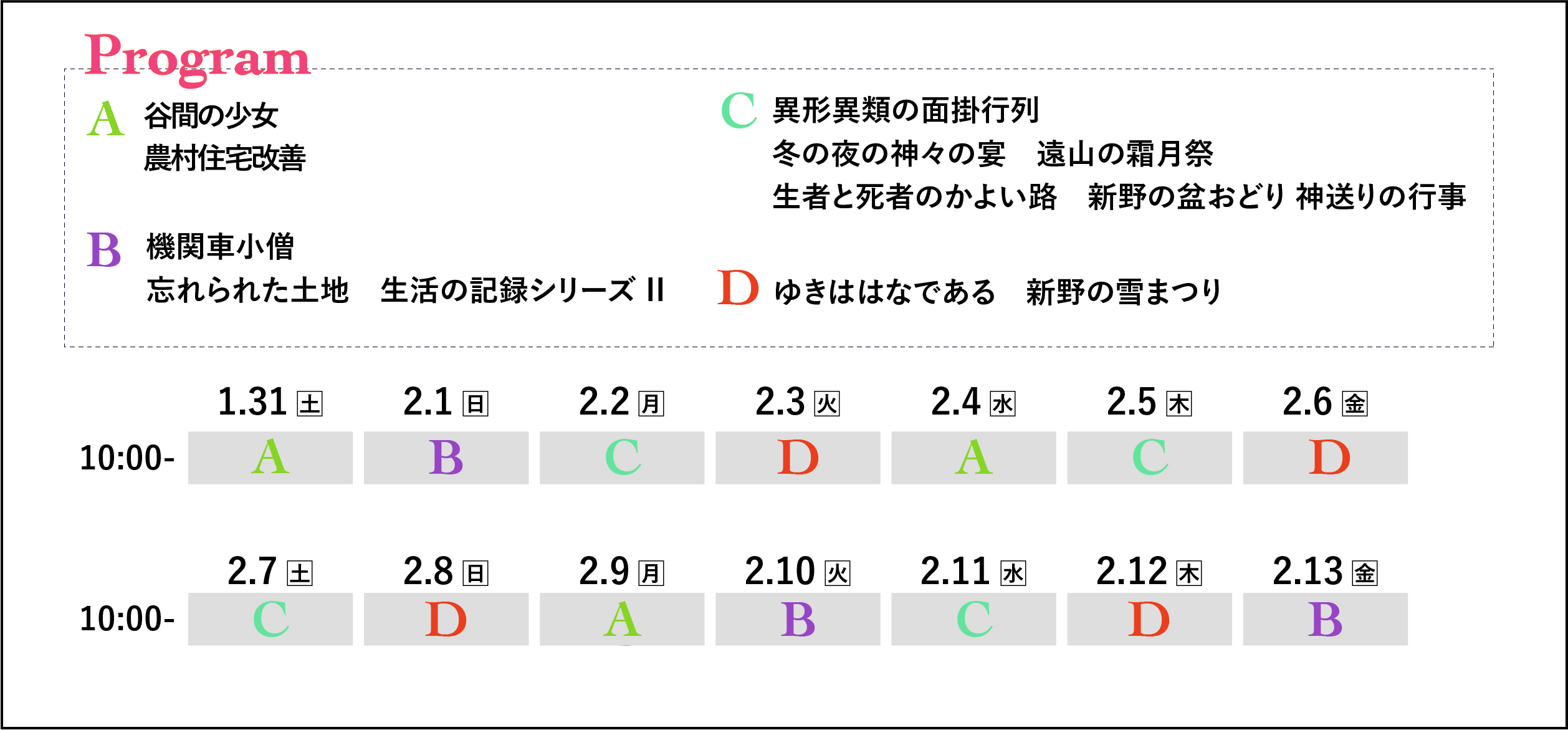 10:00野田真吉特集 ーゆきははなである *タイムテーブルはこちら