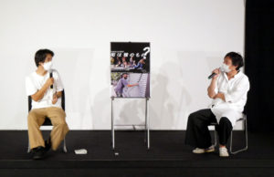 『街は誰のもの?』7/15(金)の上映後、阿部航太監督と竹内厚さんのトークを開催しました。竹内さんは編集者・ライターとして神戸を中心に、〈街〉と密接に関わる媒体を多数手掛けていらっしゃいます。もともとグラフィティに関心があったのかと竹内さんからの問いかけに、「ブラジルに行って初めて興味を持った」と阿部監督は答えます。イリーガルな行為にカメラを向けることへのハードルは日本よりもずっと低く、アーティストたちは歓迎の姿勢で撮影をさせてくれたと話されます。それでも注意は怠らず、目立たないようにアクションカメラ〈GoPro〉で全編撮影を行ったそう。その映像がとても良かったというお客さまからの感想もありました。多くのことを問いかける本作タイトルに、“所有”の感覚が街を退屈にしていくと竹内さんは話します。大阪の街に壁新聞を貼っていくという企画をされた際に、街の壁を意識して見てみるとそこに“意志”がないように感じたそう。劇中で「街を良くしてるんだよ!」と話すグラフィテイロの思いもそんなところに起因しているのかもしれません。阿部監督は、グラフィティもスケーターも、素晴らしいものもあれば下手くそなものもすべてが同じ場所にあるということが重要とも話し、街が多様性を担保することについても意見が交わされました。